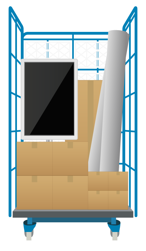 パンフレットから什器、着ぐるみまで、様々なサイズの荷物をまとめてお送りできます。
