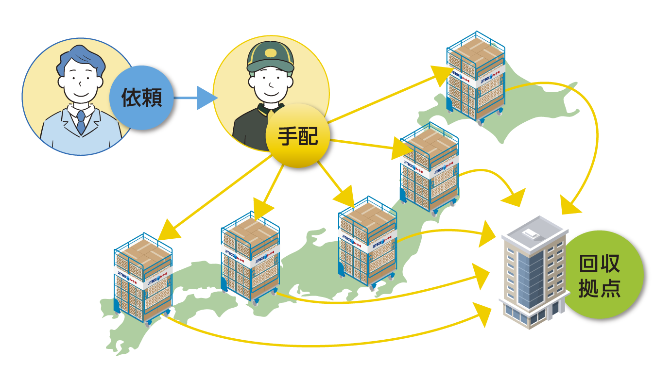 全国各地からの回収もヤマトボックスチャーターが一括で手配します。