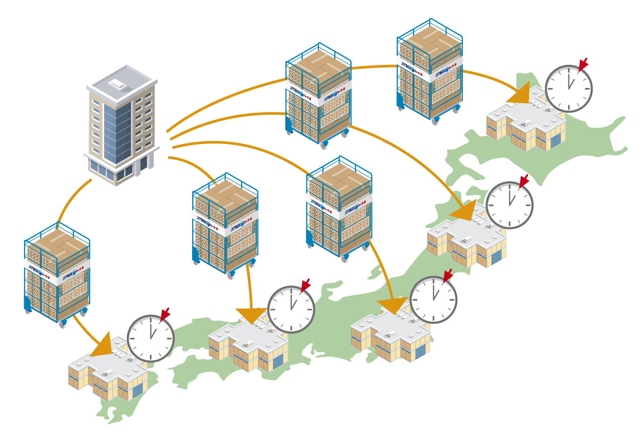 JITBOXチャーター便なら全国ネットワークで一斉納品、